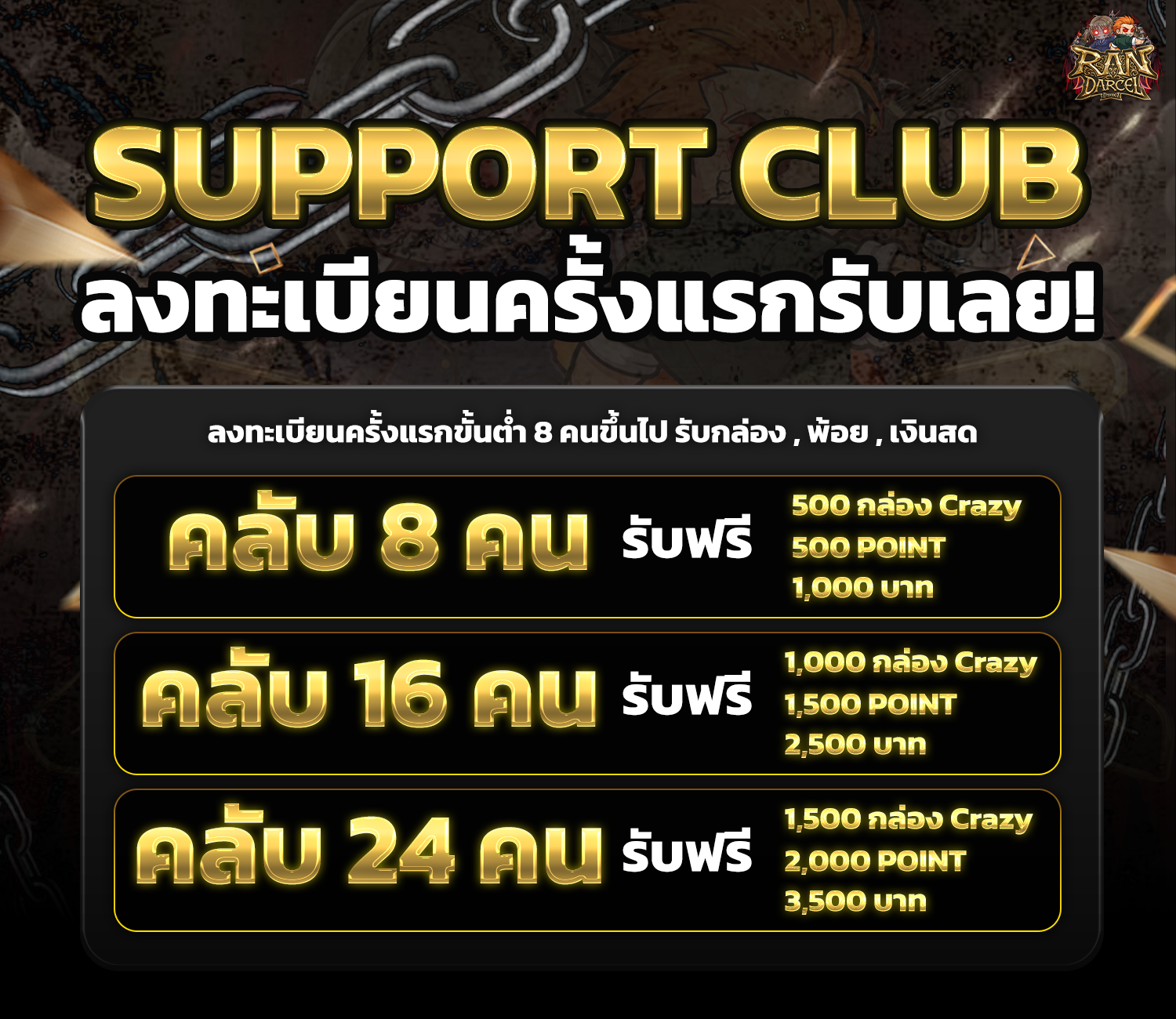 - คลับ 8 คน รับ Crazy Box 500 ชิ้น พ้อย 500 เงินสด 1,000